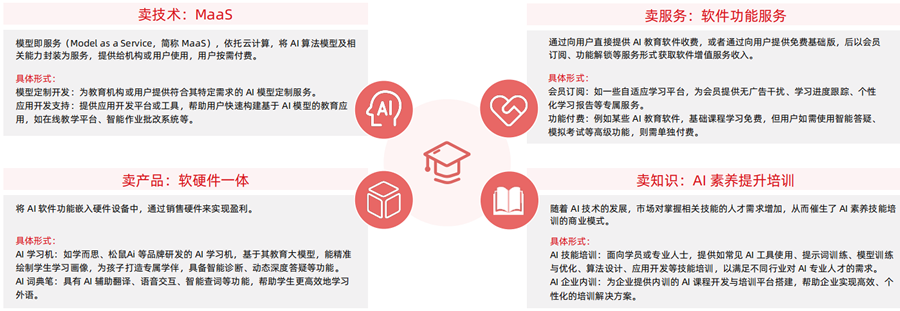模型即服務將 AI 算法模型及相 能力封裝為服務,提供給機構或用戶使用,用戶按需付費;軟硬件一體,通過銷售硬件來實現盈利;軟件功能服