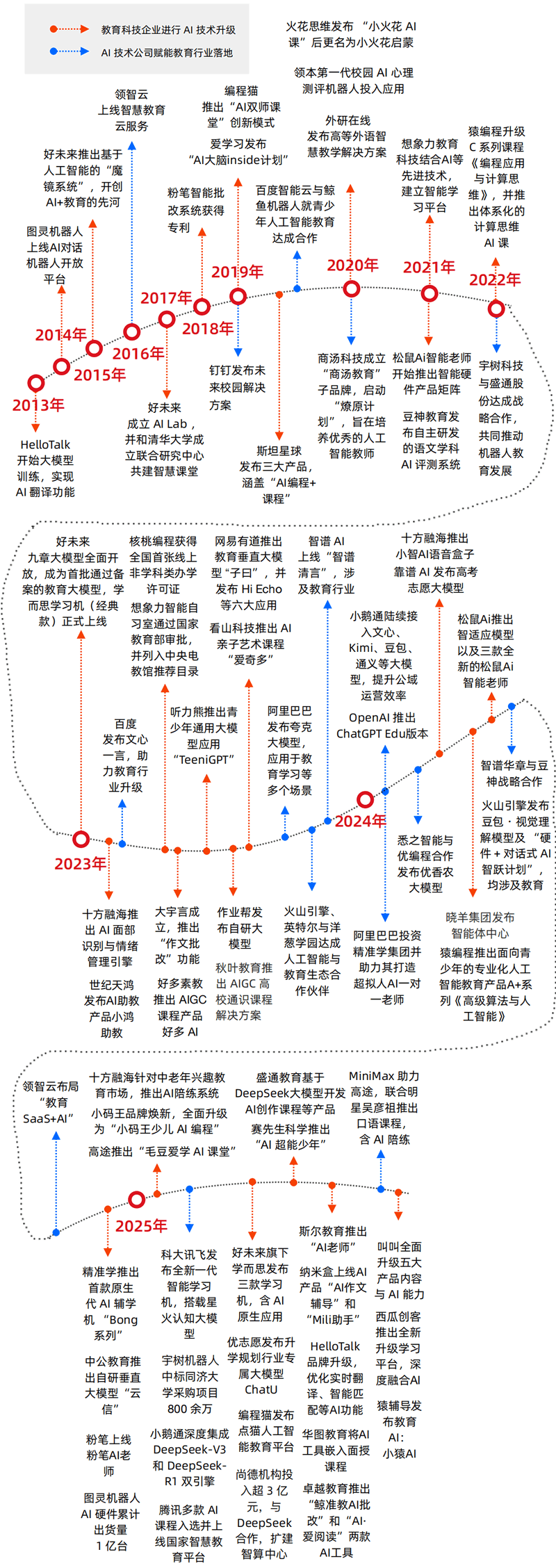 —類為教育科技企業進行AI 技術升級,其深耕教育行業多年,擁有較強的綜合實力;另—類為 AI 技術公司賦能教育行業落地,其擁有強大的資金和技術優勢,可靈活切入教育場景