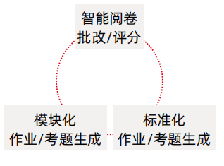 在課后作業或考試環節,AI 可輔助老師智能高效 地進行智能閱卷、批改、評分,還可批量生成模 塊化/標準化作業及考題。